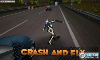 游戏操作简单,左右倾斜设备即可,贴近车辆并超越时会有加速效果,并累计积分。可支持 GC 2人联机,有人物和摩托皮肤可换。除了这些之外,当你被车撞飞后,可以享受身躯在空中飞腾,被后来车辆碾压的快感,游戏也会自动帮您拍照留念。最后,在人物倒地不动后会统计身上所受伤害,哪根骨头碎了,哪根骨头折了,是不是很炫呢?