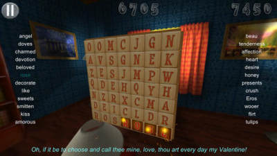 这款游戏将传统的平面找单词游戏拓展到了一个立方体上,非常考验玩家的英语水平和眼力。玩家必须根据画面提示找出相对应的单字,每次单字都是随机组合出现,范围将涵盖六个面,想要找完并过关并不是那么的容易。