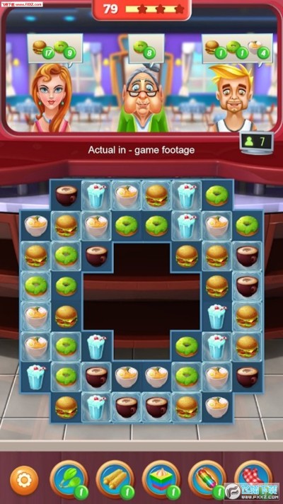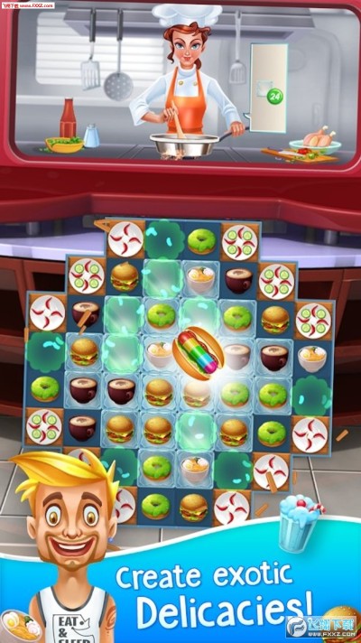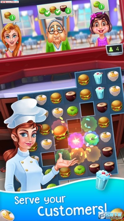在游戏中我们需要为顾客献上美味的食物, 游戏玩法非常简单,使同一类型的菜肴3点连线或更多的菜就可以完成消除。