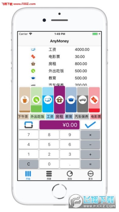 记账需要一定的坚持,AnyMoney的极速记账让你更容易地坚持下去,首页常驻数字键盘,滑动选择种类后直接输入金额,并实时显示预算剩余。