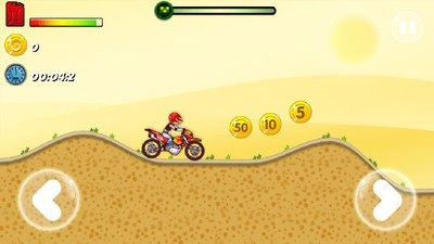 《山地越野摩托车》是一款横版模式的赛车类休闲游戏,清新的画面设计,丰富的场景制作,简单有趣的玩法体验;这将会让你时刻保持轻松愉悦的状态,喜欢的话就赶紧下载体验吧!