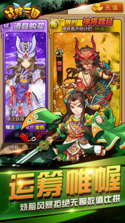 经典的三国元素与策略战争的完美继承,2018大型三国题材战略塔防国战手游《战略三国》震撼上线!游戏真实还原历史背景,千古名将纷纷登场,一改以往策略手游枯燥乏味的玩法局限,引入地形、军阵、兵种、武将特技、计谋、士气等多样因素,造就的百变的战术,让战斗胜负变幻莫测,告别由战力主宰一切的时代!