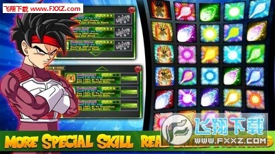 自由搭配装备和技能,变身类技能中有界王拳、超级赛亚人1-3(分别为3个技能)等;