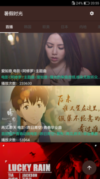 暑假时光app是一款音乐方面的手机app,这款软件可以为用户提供非常多的音乐高清MV,在暑假时光app上用户可以在线观看也能下载到本地,同时可以为用户提供非常多的榜单数据,用户也能自己订阅感兴趣的内容哦!