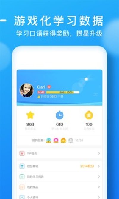 每次练习老师都会给出评价,天天乐学会记录每一个五星诞生的瞬间。(据说获得的星星以后会有大作用,可能可以召唤神龙!)