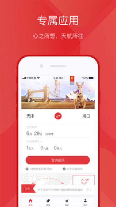 天津航空APP为您提供简单快捷的机票预订、自助值机、航班动态等服务,让您用更低的价格购买需要的产品,为您的出行提供便利。