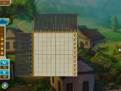 数图的玩法是玩家将会根据表格周围给出的数字线索,为表格的格子打叉或者是点亮,最终成果会是一幅精美的马赛克画,很考验玩家逻辑推理能力的。游戏中每一关会有两次错误机会,随着进度这一数字可以提升。点击正确能够提示充能,最多积攒四个提示。
