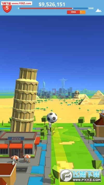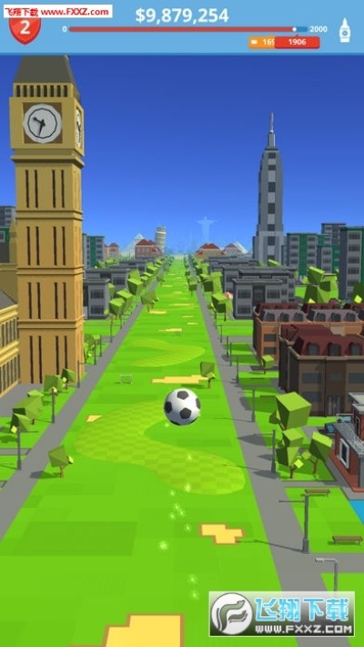 这款游戏比较魔性,玩家需要通过应用技巧控制角度进行超远射门,足球将会穿越到世界的每一处,不但可以欣赏沿途风景还可以获取大量金币;不断的挑战刷新你的距离,在足球冒险中体验休闲乐趣。
