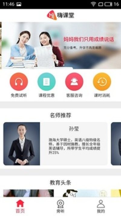 家长端则重在为家长群体提供家庭教育建议、分享优质教育文章、更新课程资源信息等功能,同时也开通了和嗨课堂班主任、授课老师们直接沟通的渠道,以便家长实时了解孩子的上课实况、学习进展
