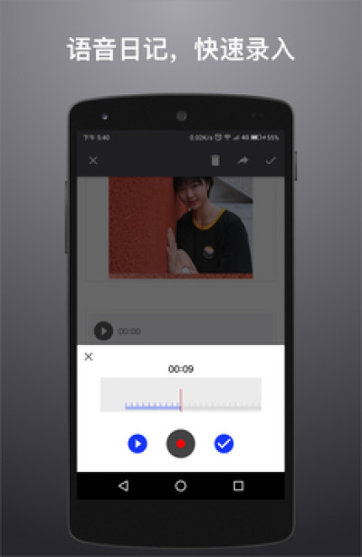 (1)增加语音模块:在日记中插入语音,与图文混排,语音录制可回滚