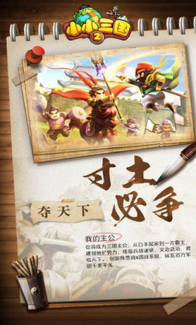 《小小三国2》是一款Q版策略类手游,将所有的三国历史完全Q版化,整个游戏的风格十分的休闲,玩家们可以在游戏中同样成为一国之君主,建立自己的国家和其他的群雄们一起来割据天下!