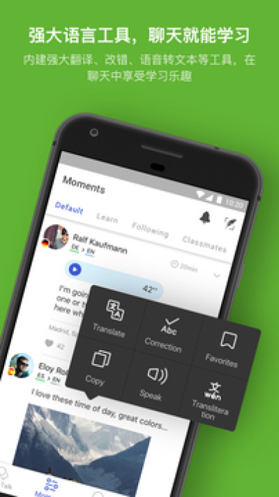 HelloTalk官方app是一款学习英语的手机app,这款软件提供的学习方法是以口语为主的,而且在HelloTalk app上可能跟外国人直接对话练习英语,还能跟朋友们一起交流学习英语,需要的用户快来下载吧!