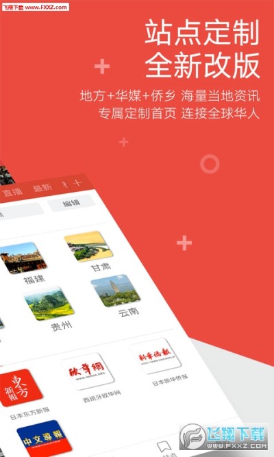 - 站点定制:整合地方、侨乡频道,聚合海内外华文媒体优质内容,一键定制属于你的专属首页,连接全球华人。