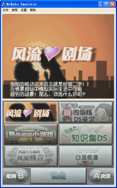 正篇故事我玩得不多,只是开始了第一个人物试了一下,但从各种情景和发生的事件来看,事件后给玩家的选择还是能让人知道泡妞时该做什么不该做什么的,如果选择了最佳答案,MM会很高兴,然后继续深入发展。选择了最差答案,无视MM的心情,那很遗憾,游戏直接OVER了。也就是说,阁下的约会要“吹”了!游戏吹了还好,现实可不能不管MM的心情哦,MM是个艺术品,要好好对待!