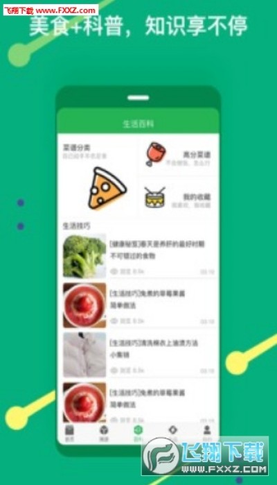 3、百科:菜谱、生活技巧,喜欢的内容一键收藏一键分享;