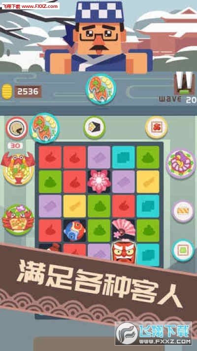 一大波的食材来袭,在客人们不耐烦之前,通过快速的消除方块把它们制作成料理来满足他们!