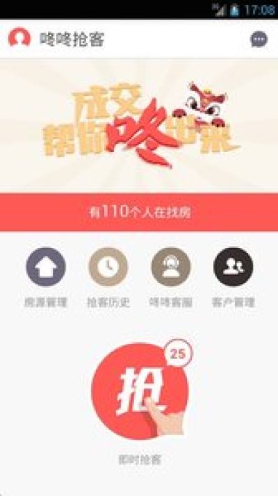 咚咚抢客app2018最新版是一款实时抢客软件,它可以帮助你快速的抢单,这款软件中设有房源管理,在第一时间为你推广,来吸引更多的客人,并且软件中还加入了在线沟通的功能,你可以和大家更好的进行交流,需要的朋友赶紧下载吧。