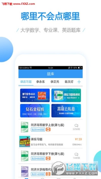 签约了全国知名的数学老师,李永乐,李正元,陈文灯等数学老师,--答疑解惑,大学数学还可以帮助您针对数学制定学习计划和学生疑问,难题的解答大大提升学生学习的效率。