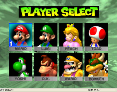 瓦里奥(Wario),大金刚(D.K.,Donkey Kong),库巴(Koppa,Bowser)(在马里奥赛车64里叫Bowser)