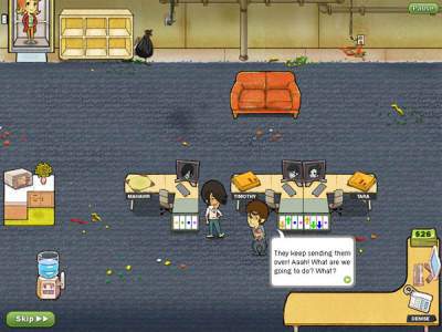 游戏画面采用了Gamelab一贯的卡通风格,人物和场景以及各种道具绘制的清新明快,具有不错的表现。游戏的场景中布满了各种办公用具,很多场景和道具的细节上变化丰富。游戏的音乐风格比较轻快和滑稽,而这正好对应了卡通和幽默的游戏风格,让游戏的过程更显轻快。