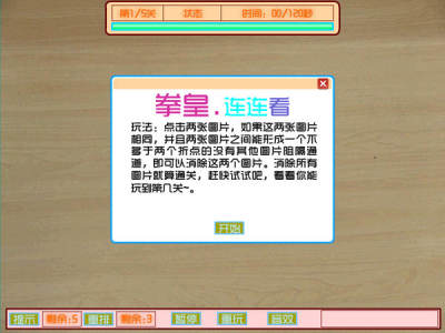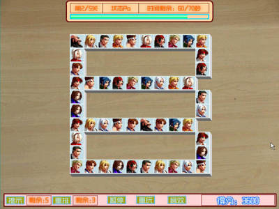 拳皇连连看是利用拳皇的人物头像而制作的一款连连看类型FLASH小游戏,游戏中我们可以看到许多当年熟悉的人物,比如八神、拉尔夫、陈国汉等等。在限定时间内成功的消除掉所有的图标吧,最后来比比,看谁的分数最高!
