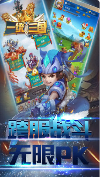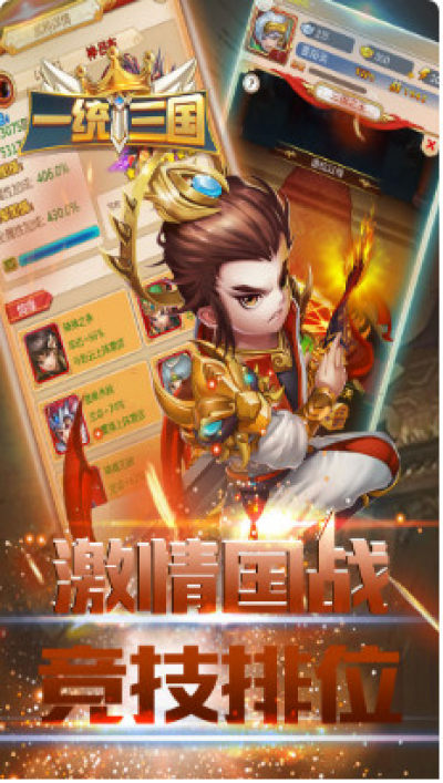 卡牌RPG塔防休闲游戏《一统三国》打造Q版萌新的青少年英雄武将,让玩家化身青年主公。,各个三国武将造型各有千秋,游戏中玩家可自由搭配武将,并率领一众武将与敌将征战沙场,知名武将将乘骑各式特色坐骑,加上多彩炫丽的技能特效,让玩家享受最炫丽的战斗画面。