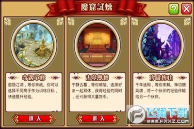还在为每日枯燥的练级烦恼吗?还在为孤独的武侠屌丝人生烦恼吗?与其怨天尤人,不如加入魔窟试炼。解放你的双手,选择隐士高人指点,就可以获得大量经验。选择心仪对象,远离繁华闹市的喧嚣,就可以开始二人世界。不仅可以倾诉儿女情长,还可以获得名望,经验等大量收益。