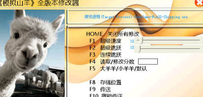 HOME 关闭所有修改F1 超级速度F2 超级跳跃F3 连续跳跃F4 读取/修改分数F5 大羊羊/小羊羊/默认F8 存储位置F9 传送F10 撤销传送