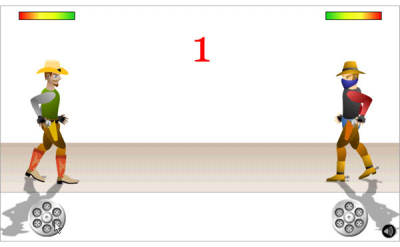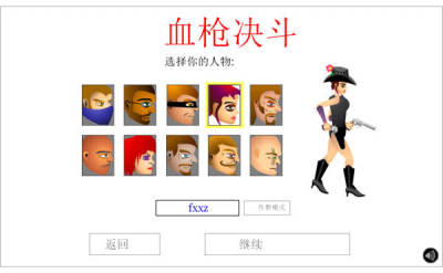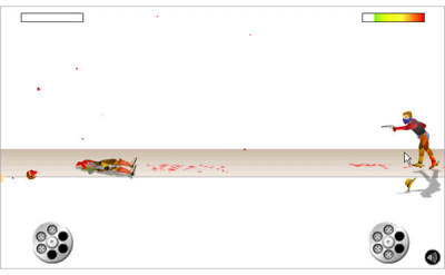 血枪决斗是一款国内达人自制的flash小游戏,玩家要像西部电影里那样和AI在3秒后互射,倒下也不能停止,直到6发子弹打空为止。电脑的出枪速度和准度都会越来越高,看看小伙伴们最高能打到多少分吧!最后的BOSS可是很难的哟!