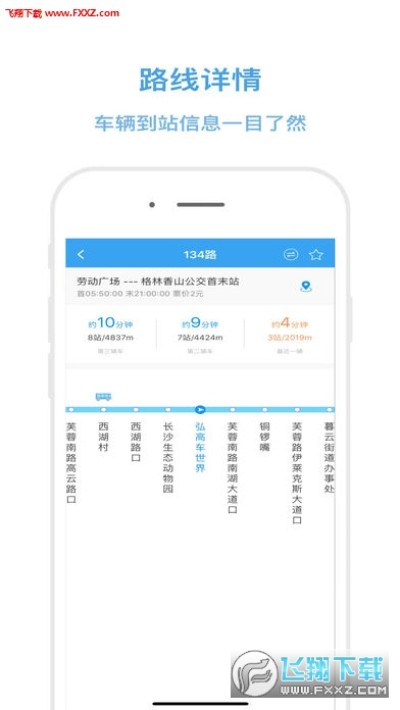 星城公交app不仅能提供公交车的到站距离、预计到站时间,还能显示整条公交线路的通行状况,