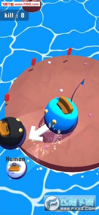 2、利用手中的武器,将与你碰撞的对手进行敲击,给它造成一定的伤害,从而为自己获得加分;