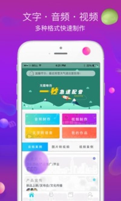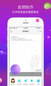 配音师软件是一款支持配音的软件,这款软件是利用各种文本内容来添加配音的哦,在配音师app上用户可以自己选择想要配音的作品,用自己的声音发声,这款软件适用于多个场景,操作简单方便,还能直接文字转语音哦,感兴趣的快来下载吧!