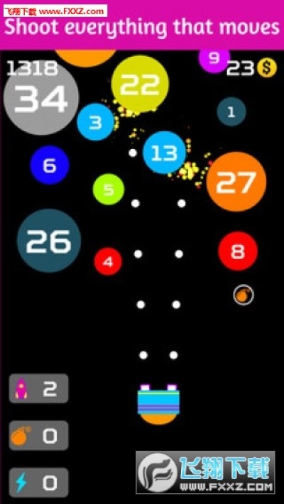 这里存在着海量不同颜色、不同数字的弹球,你需要驾驶小小的战斗机将它们通通击碎;通过收集各种道具可以提升战斗机的能力属性,帮助你更加得心应手的面对充满整个屏幕的弹球。
