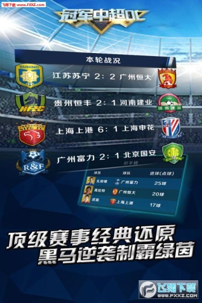 《冠军中超OL》是一款中超足球经理类手机游戏,球员数据庞大专业,超过5000名现役球员,媲美《FM足球经理》的专业数据,每名球员还有照片级的3D头像,还拥有接近PC游戏画质的3D渲染引擎和强大的AI动作引擎,比赛场景真实生动。