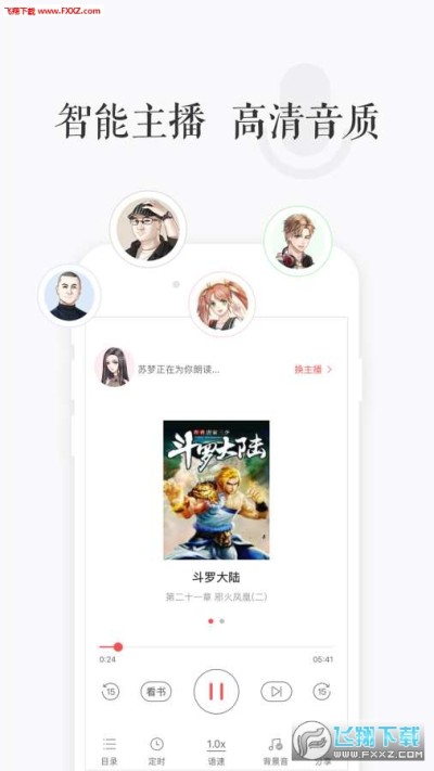 科大讯飞人工智能语音技术给阅读赋能。无限逼真音质,萝莉、御姐、正太、大叔……各种主播免费下载,拒绝无情感的机器音,同时又打破真人读书的局限,全网小说读你想听。
