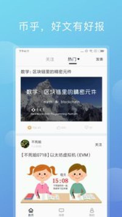 币乎是一款币圈的手机app,主打的是资讯,在币乎app上用户能看到非常全面的币圈资讯,都是专业的人士发布的,支持各种币圈的相关操作,另外还有独家的币乎id区块链的玩法,你发布的内容还能获得相关奖励哦!