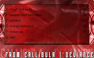 盟军敢死队2相比1代,难度大大的提高了,这款修改器包括了真正的无敌模式,敌人无子弹模式,隐形模式,无限耐久力,无限空气等五项属性的修改!