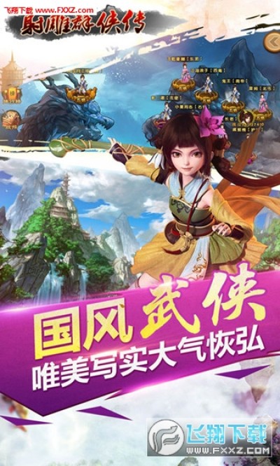 金庸正版武侠手游《射雕群侠传》手游以金庸小说射雕三部曲——《射雕英雄传》、《神雕侠侣》、《倚天屠龙记》为蓝本,2000万金庸粉倾力推荐。百分百还原小说世界,有山有水有江湖,写意武侠精髓真谛,练就神功一统江湖!。目前官方收录金庸武侠人物最全的手游。