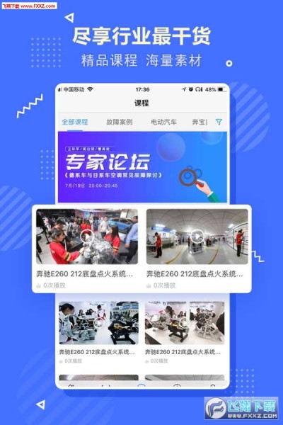 1.名企总监直播课堂:每天多期视频直播,由汽车行业名企的总监级专家,亲自详解工作中常见问题,分享一线工作心得,帮助学员快速积累经验。课程内容包括汽修基础知识、故障案例、经典实操课堂、电动汽车修理系列实战案例、奔驰宝马奥迪系列实战案例、汽车改装、汽车最新资讯、无人驾驶课堂等。