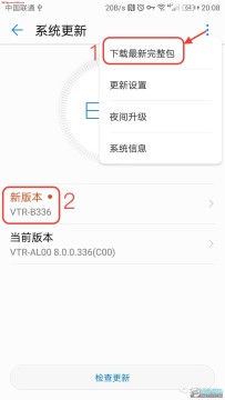 10.进入“设置->系统->系统更新”,为稳妥起见建议先从右上角菜单选择“下载最新完整包”,然后再点击“新版本”