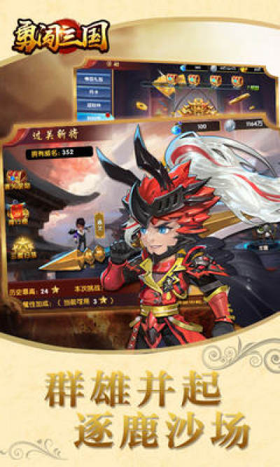 勇闯三国最新版是一款三国题材卡牌策略类手游,游戏有着浓浓的卡通Q萌的画风,多达百余名的武将等待玩家的召集,丰富的关卡等你来挑战!喜欢这款游戏的朋友快来下载吧!
