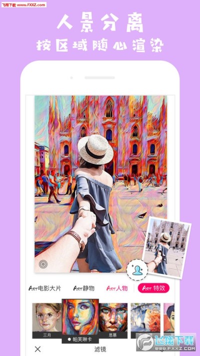 在已有的风格迁移与人景分离的基础上,新版本「马卡龙玩图」最大的不同点在于:用户能选中图像中的不同素材进行单独创作,而创作的玩法也不仅限于对绘画风格的渲染。