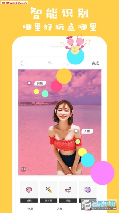 AI瞬间识别照片中的人、狗、猫、背景等元素,还可以对所有元素进行独立美图