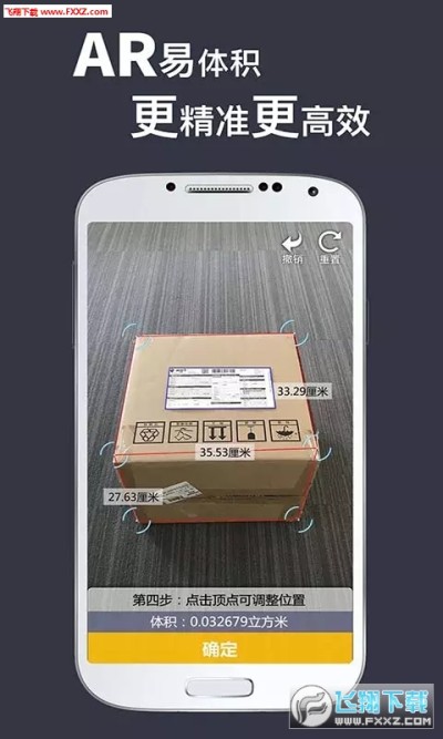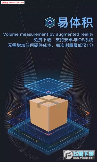 AR 易体积软件,是基于 AR 增强现实技术,通过特定图像算法研发,支持所有单目摄像头设备。用户通过软件,扫描录入系统的识别图,可以快速获取标准箱体的长、宽、高、体积数据的软件产品。本软件产品支持直接安装或 SDK 嵌入定制开发等方式进行使用。
