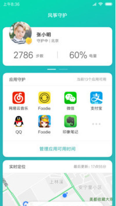 风筝守护app是一款能够帮助大家保护自己家人孩子的安全的app,使用亲情守护管控家人手机应用的使用时间,实时查看家人位置,保护家人网络环境。特别是孩子使用手机玩游戏或者上网看一些不健康的内容,我们都可以监控到哦,非常不错的软件,推荐大家下载。
