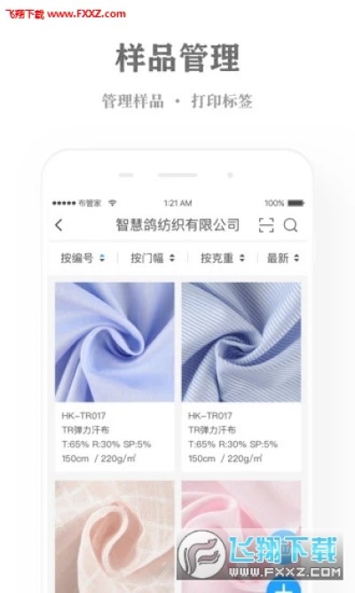 布管家app是一款用于纺织管理的软件,这款软件中有样品管理、打印标签以及协同办公等多个功能,能够帮助纺织进行日常的管理,而且还能够帮助你发现商机,可以关联相同的联系人,进行推样、寄样等,需要的朋友赶紧下载吧。