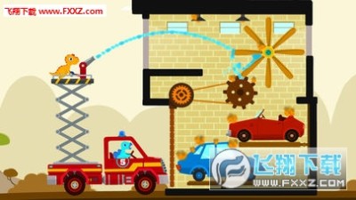 孩子们化身成小恐龙消防战士,驾驶消防车机智的穿过障碍,到达目的地,控制水枪去灭火,将燃烧的火苗扑灭,救出被困的恐龙小伙伴!