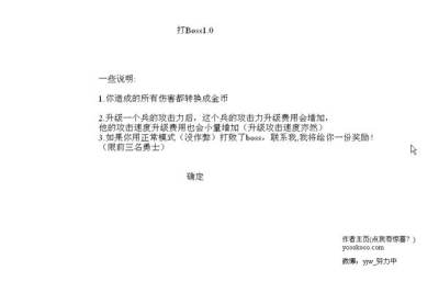 打BOSS1.0是一款挂机类的小游戏,游戏中玩家需要打败一条血量超级厚的龙,你可以加强自身,也可以招募士兵,游戏虽然玩法简单,但是想要打过关可是需要毅力的。比起其他一些放置类的游戏来说,这个BOSS 330亿亿的血还是让玩家看起来挺有盼头的。
