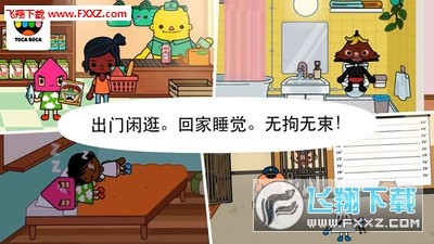 来逛逛托卡小镇吧!逛商店买食材,进餐馆自己动手煮午餐,然后回家和朋友们一起看电影。要么也可以奔向公园享受野餐,或去警察局找警官玩。晚餐吃燕麦,临睡前是不是可以来一场小型枕头大战呢?在 托卡镇,一切由你决定!