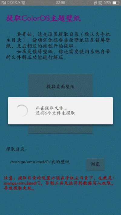 1、提取目录的设置必须在手机主目录下,也就是/strange/emulated/0,
